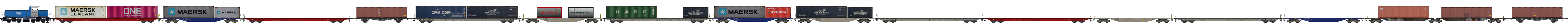 (beladen (ONE, Maersk)/Rot, Rail-Cargo Austria) 21,5 t/25,9 m